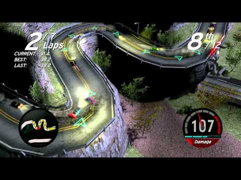 Jogo de corrida com carros em miniatura com visão aérea.